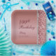 These elegant and luxurious square rose gold glitter and diamond sided 9" paper plates are perfect for your 100th birthday celebration for your wife, sister, mom, aunt, grandmother, great grandmother. Their chic and modern fonts are crisp and clean and making them unique and one-of-a-kind just like your loved one.