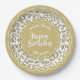 100th Gold/White Random Number Pattern Paper Plates