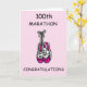 A pink and white pair of training shoes on a pale pink background, with the words '100th marathon congratulations'.