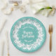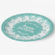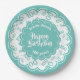 This is a teal and white random number pattern with fancy scallops and custom text. The teal milestone number 100 is scattered over a white background. The design is a very cool fun way to celebrate the past 100 years at your over-the-hill, 100th birthday party.