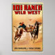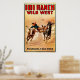 Reproduction of public domain advertising poster. The fabulous 101 Ranch Wild West Show featured Bill Picket, the famous African-American cowboy who invented bull-dogging. Our good friend in Ponca City, OK, says, "Bill Picket was a black cowboy who invented bull-doggin' by bitin' the lower lip of the bull!"