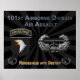 This artwork is dedicated to the great 101st Airborne Division. This unique division is the U.S. Army’s only Air Assault division and has a proud and distinguished combat history. The 101st Airborne Division is based at Fort Campbell, Kentucky. This poster will immediately let everyone who happens to see this poster will know that you are proud to display your respect and admiration for this truly great division.