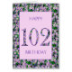 102nd Birthday card for a lady who likes flowers. An elegant birthday card with a background of purple daisy flowers. This is the perfect card for a girl who loves anything floral or purple!