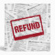 Collection 1040 income tax forms with bold red refund stamp.