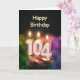 A birthday cup-cake with candles. The candles are made up of the number 104, for a 104th birthday. A birthday card suitable for everybody.