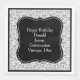 This modern design has is a bracket-shape printed over a black and white random number pattern which was created using a back milestone number 105 scattered in various sizes and angles over a white background. Your custom text is printed in the center of the black bracket shape.