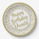 105th Party Random Number Pattern Gold/White Paper Plates