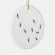 Lightweight, smooth, pure white ornament with nice sheen. Perfect size to be seen from across the room ... and to attract closer inspection! Price was great for ordering enough for the whole family! Clear, bold black design just as requested. Matches the order exactly. Just so nice!