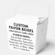 10 x custom personalized LARGE TAKE OUT (Take Away) FAVOR BOXES, 3" wide x 2.75" long x 3.75" high, printed in full color on high quality card stock, save up to 20% with bulk buy, for wedding favors, bridal shower favors, baby shower favors, and party and event gift giving. Design, make, create your own Square favor boxes. A Favor Box is a great presentation item for giveaway Brownie Favors, Cake Pops Favors, Cookie Favors, Lip Balm Favors, Jelly Bean Favors, Mint Favors, Tea & Coffee Favors, Drink Mix Favors, Hand Lotion & Sanitizer favors, Keychain favors etc.
