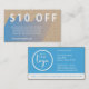 Customize this trendy discount business marketing card. This is perfect for an e-commerce business such as a boutique, Etsy store, or any other small business. It features the phrase "$10 OFF" and has customizable text to explain further special offer details. Reverse side has company contact information.