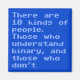 There are 10 kinds of people who understand binary, those who do, and those who don't!