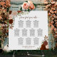 This beautiful 10 table wedding seating chart features a rustic floral design with hand painted watercolor roses in shades of rust orange, burnt umber, and coral peach. The flowers are surrounded by eucalyptus leaves and fall garden foliage. The traditional layout has space for 100 guests at with 10 seats per table. The title features elegant script calligraphy and there is space for the names of the couple and wedding date below. Wonderful way to make your wedding reception beautiful while making it easy for your guests to find their seats.