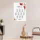 Help your guests find their table with this red and white rose floral wedding seating chart. It is suitable for a wedding with 10 tables and 100 guests.