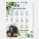 Modern elegant wedding seating chart with table numbers and names. Space allowing you can add or decrease the number of tables and names to suit your needs. Add a couples photo as desired to create a unique keepsake. There are many variations of this seating chart, different sizes, product type and all budgets covered including budget range at less than $5. Thinner paper charts can be framed to create a sturdy wedding decoration and sign.