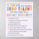 10 Things To Be A great Student Classroom poster, to use in the classroom, or office of a School Counselor, Child Therapist, School Psychologist, Social Worker and Child Psychologist Office.