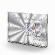 Ornate faux jewels numbers, silver shadowed text- plus script date at the bottom in basic black- all on a silver draped satin look backdrop. Fully customizable Retirement , job well done, anniversary, graduate, reunion or more. Customize to your heart's content.