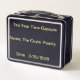This is a standard metal lunchbox that appears to work just fine. We designed this box ourselves with an uploaded photo and custom text on the front and back. It looks absolutely beautiful except the front of the lunchbox is not centered like it shows in the photo. The print borders don't align with the inset flat part of the box where the preview photo online showed it perfectly centered in there. The back looks nice and centered though.