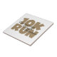 Tan text that reads 10K RUN and black text that reads Determination Strength Endurance on running T-shirts, hoodies, buttons, bags, mugs, stickers, and other products for anyone who is training for or already has run a 10K!