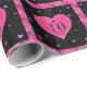 Bright pink and classy black 10th Anniversary heart wrapping paper.