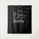 Welcome the party's honorees and guests and utilize as a fun photo backdrop for pictures with this 10th wedding anniversary banner sign designed in black and silver with a string lights border and featuring a retro typography title 10 YEARS IN THE MAKING which incorporates their wedding year as part of the design and personalized with their names. NOTE: You can change the black background color to coordinate with your party theme colors by clicking on CUSTOMIZE FURTHER. Contact the designer via ZAZZLE CHAT or makeitaboutyoustore@gmail.com if you'd like this design modified, on another product or coordinating party supplies and gifts.
