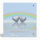 Two tin or aluminum hearts floating on the water under a rainbow. Customizable text says "10 Years".