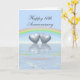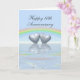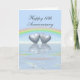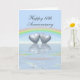 Card with my image of two tin or aluminum hearts floating on the water under a rainbow.