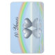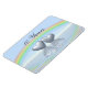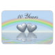 Magnet for 10th anniversaries with my artwork of two tin or aluminum looking hearts floating on the water under a rainbow. Customizable text says "10 Years".