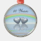 Two tin or aluminum hearts floating on the water under a rainbow. Customizable text says "10 Years".