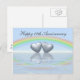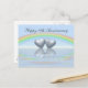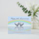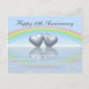 Postcard with my design of two tin or aluminum colored hearts floating on the water under a rainbow. Customizable text says "10 Years".