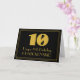 This vintage appearance and Roaring '20s era inspired birthday greeting card design features a large art deco look inspired number "10", the message "Happy 10th Birthday,", an editable name, and a border pattern consisting of thin lines on the front. The background of the front is colored black. The inside has a personalized birthday greeting message, or could perhaps be cleared and left blank if a message is to be written by hand instead. A personalized birthday greeting card like this might be used to acknowledge somebody’s tenth birthday. [~Z0000498]