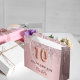 Elegant, classic, glamorous and girly for a 10th birthday party. A chic blush pink gradient background. Decorated with faux glitter drips, paint dripping look. Personalize and add a name. With the text: Happy Birthday. The name is written with a modern dark rose colored hand lettered style script. Number 10 is written with a balloon style font.