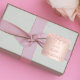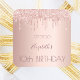 A sticker for a girly and glamorous 10th birthday party. A rose gold background with drip look. The text: The name is written in dark rose gold with a large modern hand lettered style script. Template for name, age 10 and a date.