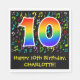 This fun, vibrant, and colorful birthday paper napkin design features a large number "10" having a rainbow spectrum gradient inspired pattern. It also features the message "Happy 10th Birthday,", and a custom name. Part of the background has a pattern of various music notes and symbols having a variety of colors and sizes. Birthday themed paper napkins like this might be fun to use at a party being held to celebrate a musician’s, a singer’s, a composer’s, or somebody else’s 10th birthday. [~Z0000421]