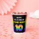 This bold and cheerful birthday themed paper cup design features a big number “10“ having a vibrant rainbow spectrum inspired gradient pattern, along with the message “HAPPY 10th BIRTHDAY,”, and an editable recipient name. Paper cups like this might be used at a party for somebody who is celebrating their 10th birthday. [~Z0000639]