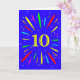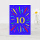 An explosive 10th birthday card! What a wonderful way to send birthday greetings. The number 10 in bright yellow with an explosion of bright colors and stars.