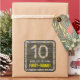 This rustic, floral, nature-inspired birthday square sticker design has the message “Happy 10th Birthday,” and an editable recipient name. The large number “10” and the border feature flower icons. The background has a faux/imitation woodgrain type pattern. Stickers like these might be used when celebrating somebody’s tenth birthday. [~Z0000654]