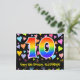 The front of this fun, exciting, and colorful birthday-themed postcard design features a large number "10" having a rainbow spectrum gradient inspired pattern. It also features the message "Happy 10th Birthday,", and an editable recipient name. The front additionally features a colorful and vibrant loving hearts background pattern. The back features a customized birthday greeting message, or could perhaps be cleared and left blank if a message is to be written by hand instead. A customizable birthday postcard like this might be a fun way to send a message in celebration of somebody’s tenth birthday. Postcards like this might also be used to invite guests to a birthday celebration or party being held for somebody who is turning 10 years old. [~Z0000448]