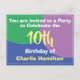 invitation for a special birthday party with name, and number of years. Party invitation for a 10 year old. Add your own details.