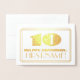The front of this luxurious vintage appearance and 1920s/1930s style inspired birthday foil greeting card design features a large art deco style inspired number "10", the message "HAPPY BIRTHDAY,", a customizable name, and a border pattern consisting of lines. The inside features an editable birthday greeting message, or could perhaps be cleared and left blank if a message is to be written by hand instead. A customizable birthday card like this might be an elegant way to acknowledge somebody’s tenth birthday. [~Z0000507]