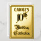 The front of this ornate tenth birthday party/celebration foil invitation design features the message “10th Birthday Celebration” in elegant script-style text. It also has an editable name. The back features personalized details about the event, such as the date, time, venue/location, and any other useful information. Elegant, fancy, customizable invitations like these might be used to invite guests to a birthday celebration/party being held to honor somebody’s tenth birthday. [~Z0000596]