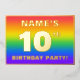 The front of this upbeat and vibrant tenth birthday party foil invitation card design features a customizable name, a large number “10th”, the message “BIRTHDAY PARTY!”, and a border. The background of the front features an eye-catching, multicolored, rainbow spectrum inspired gradient pattern. The back features personalized details about the event, such as the date, time, place/venue, and any other important information. Customized invitations like these might be a fun way to invite attendees/guests to a birthday party being held in celebration of somebody’s 10th birthday. [~Z0000599]
