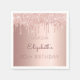 A napkin for a girly and glamorous 10th (or any age) birthday party. A faux rose gold background with drips, paint dripping look. The text: The name is written in dark rose gold with a modern hand lettered style script. Personalize and add a name, age 10 and a date.