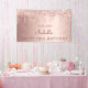 A banner for a girly and glamorous 10th (or any age) birthday party. A faux rose gold metallic looking background with an elegant faux rose gold glitter drips, paint drip look. Personalize and add a name written in dark rose gold with a modern hand lettered style script. Templates for a date and age 10. Perfect both as a welcome banner or as party decor. With the text: Happy Birthday