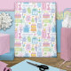 10th birthday bright pastel pink, blue, green, purple and orange party cake, presents and balloons. Each present has the number 10 on it to make the birthday girl feel special. Butterflies, flowers, xo's, and hearts are added throughout the pattern. Pretty girly wrapping paper for a 10th birthday celebration.