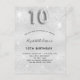 A modern, stylish and glamorous invitation for a girl's 10th birthday party. A faux silver looking background, decorated with glitter dust. Personalize and add your name and party details. Number 10 is written with a balloon style font, script.