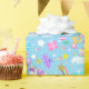 This adorable 10th birthday unicorn design, featuring stars, clouds, and rainbows, makes the perfect wrapping paper for a magical celebration.