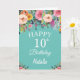 10th Birthday Watercolor Floral Flowers Teal Card with personalized name and age. For further customization, please click the "Customize it" button and use our design tool to modify this template.