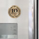 Gold foil style 10th-anniversary magnet with a business logo. Ideal for the employees or as promotional supplies for customers. Commemorative design with a laurel branch and stars. The logo can be changed for text by clicking the button to edit the design.