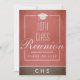 Send your 10th class reunion classmates our elegant flat card invitation. This design template features a red and marroon shimmery background. The white typography reads "10th Class Reunion" with your school name and year to personalize Below is your school's monogram. The back of the card has more of your celebration details for you to customize. Designed by world renowned artist ©Tim Coffey.