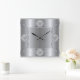 If you're looking for a metallic-like wall clock for their 10th tin, 11th steel, 20th platinum, 25th silver or 70th platinum wedding anniversary, perhaps this classic styled emblem design will be just the thing!
